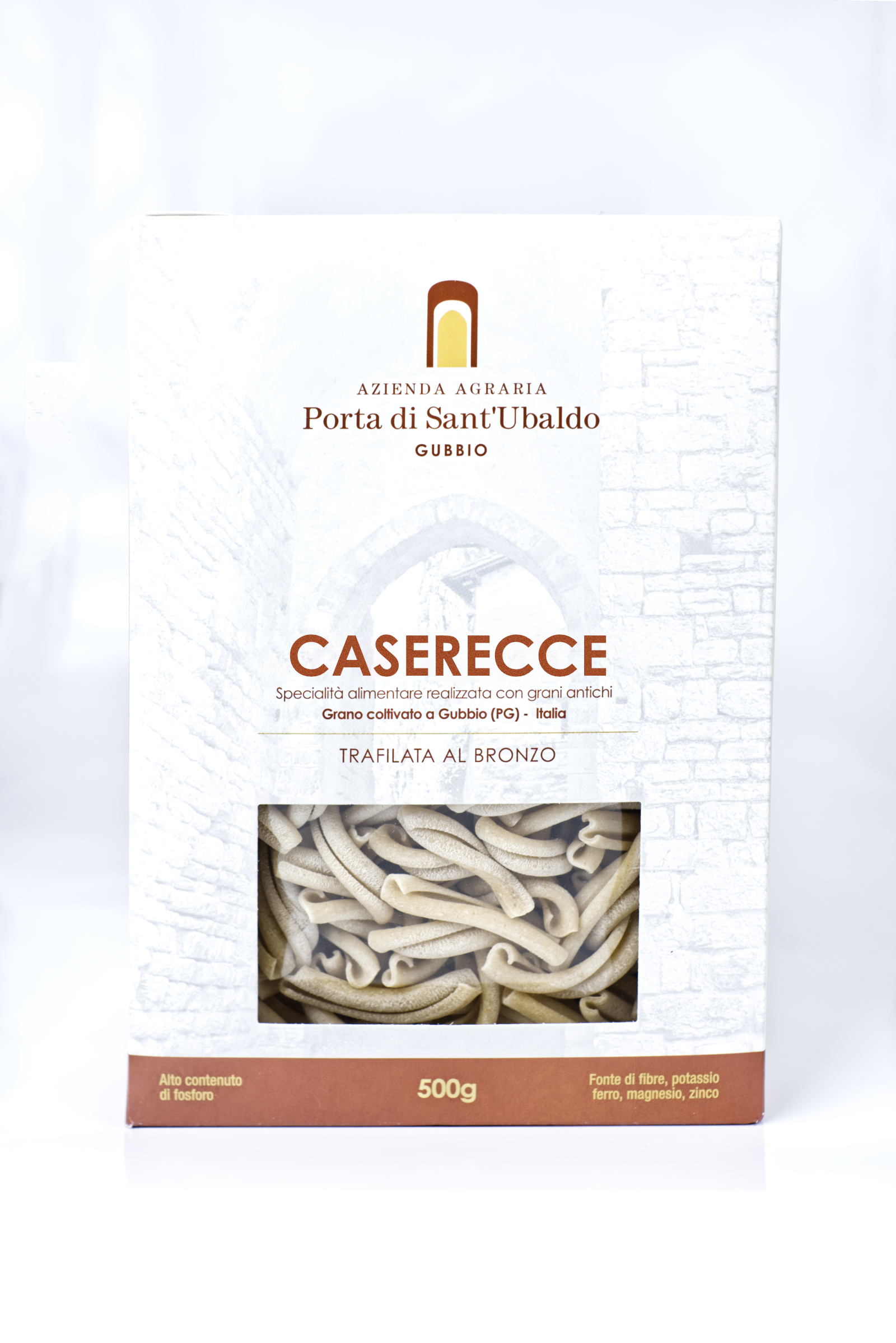 STROZZAPRETI DI GRANO TENERO ANTICO 500 gr Coltivato nelle campagne eugubine con alto contenuto di fosforo , fonte di fibre, potassio, ferro, magnesio e zinco. Grani: verna, gentilrosso, senatore cappelli.